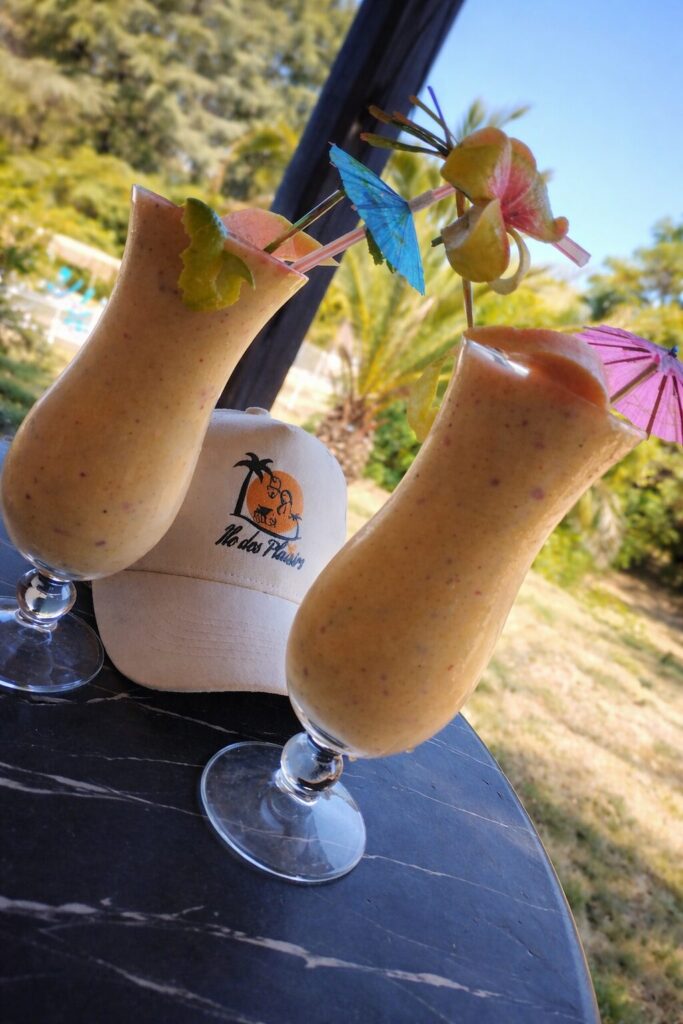 Cocktails frais, smoothies fruités et vibes tropicales au bord de la piscine. À savourer pendant votre séjour à l’Île des Plaisirs ou lors des pools partys.
